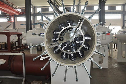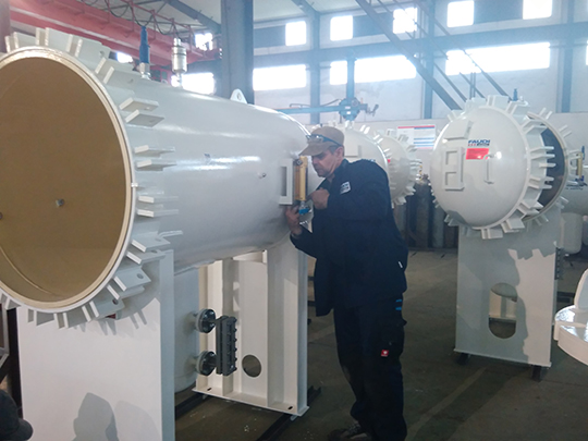 該批設備制作要求高,交貨周期短,并要求按照GB150、美國ASME、德國AD多重規(guī)范設計并符合歐盟PED指令,產(chǎn)品需要ASME U鋼印。客戶亦派遣資深質量專家全程跟蹤產(chǎn)品每道工序。