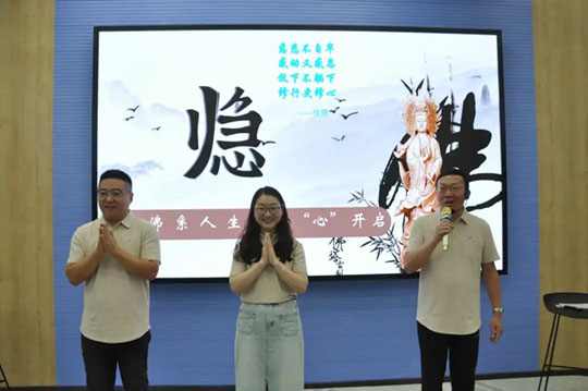 學(xué)習(xí)和運(yùn)用佛陀的經(jīng)典要義,本場(chǎng)活動(dòng)中還穿插了互動(dòng)環(huán)節(jié),就如何以智慧的方法去處理家庭關(guān)系,以及夫妻之道、教育子女等話題,活動(dòng)現(xiàn)場(chǎng)展開了活躍的討論;同事們積極參與交流,敞開心扉,對(duì)照與反觀,獲得不少感悟。