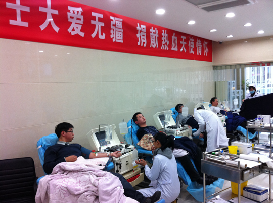 1月19日,患病同事趙亞東的家屬向公司發(fā)出了緊急求援,希望能有同事為趙亞東定向捐獻(xiàn)成分血。短短的半小時(shí),質(zhì)檢部劉小冬、朱浩,國(guó)際部石玉成,事務(wù)部嚴(yán)建新在殷總的帶領(lǐng)之下迅速趕到市血站下屬的愛心獻(xiàn)血屋獻(xiàn)血。雖然遺憾的是,由于捐獻(xiàn)成分血對(duì)捐獻(xiàn)人的各項(xiàng)身體指標(biāo)要求較高,五人均未達(dá)到要求,但他們的善舉仍然讓趙亞東的家屬非常感動(dòng)。與此同時(shí),公司、工會(huì)、愛心基金會(huì)聯(lián)合發(fā)出了為趙亞東獻(xiàn)血倡議,率先得知消息的科室員工積極響應(yīng),紛紛簽字響應(yīng)獻(xiàn)血倡議,稍后得知消息的生產(chǎn)部員工也是積極響應(yīng),紛紛表示愿意為趙亞東獻(xiàn)血,甚至考慮到春節(jié)期間的用血。
