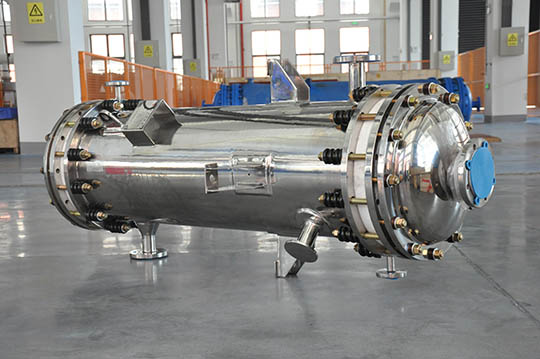 該換熱器由殼體及管板等組成,其關(guān)鍵部件是管板,每一端的管板都由兩片加襯PFA的碳鋼組成,確保了設備的安全運行和耐腐蝕性;